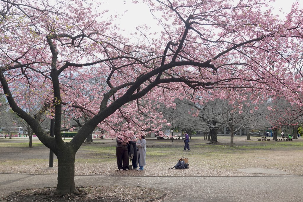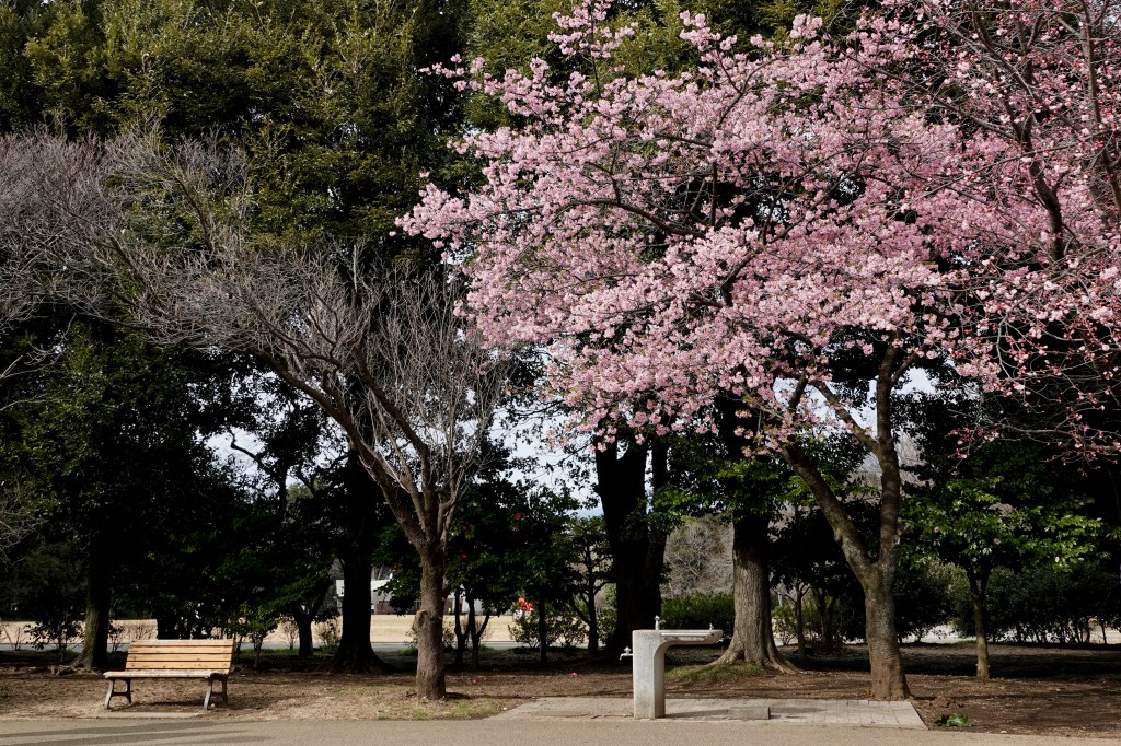 The pale pink added a layer to the grey and green in the park. The sakura trees in the park were not in full blossom yet, but this silently emerging sight of their beauty comforted me. The monochromatic bare trees were interlacing with the gentle pink. Spring was approaching.